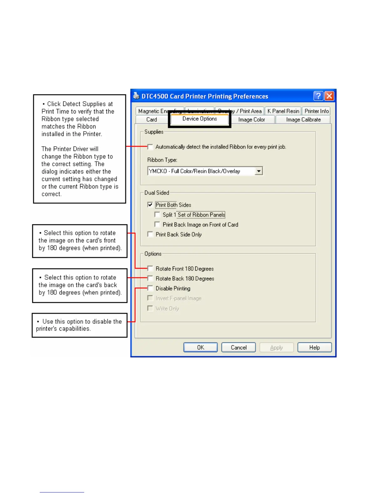 Fargo DTC4500 - Using the Device Options Tab