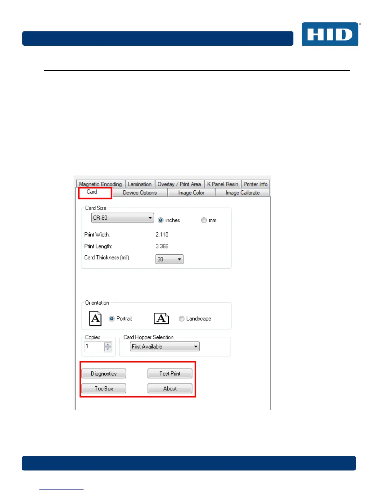 Fargo DTC4500e - Printing Preferences - Card Settings