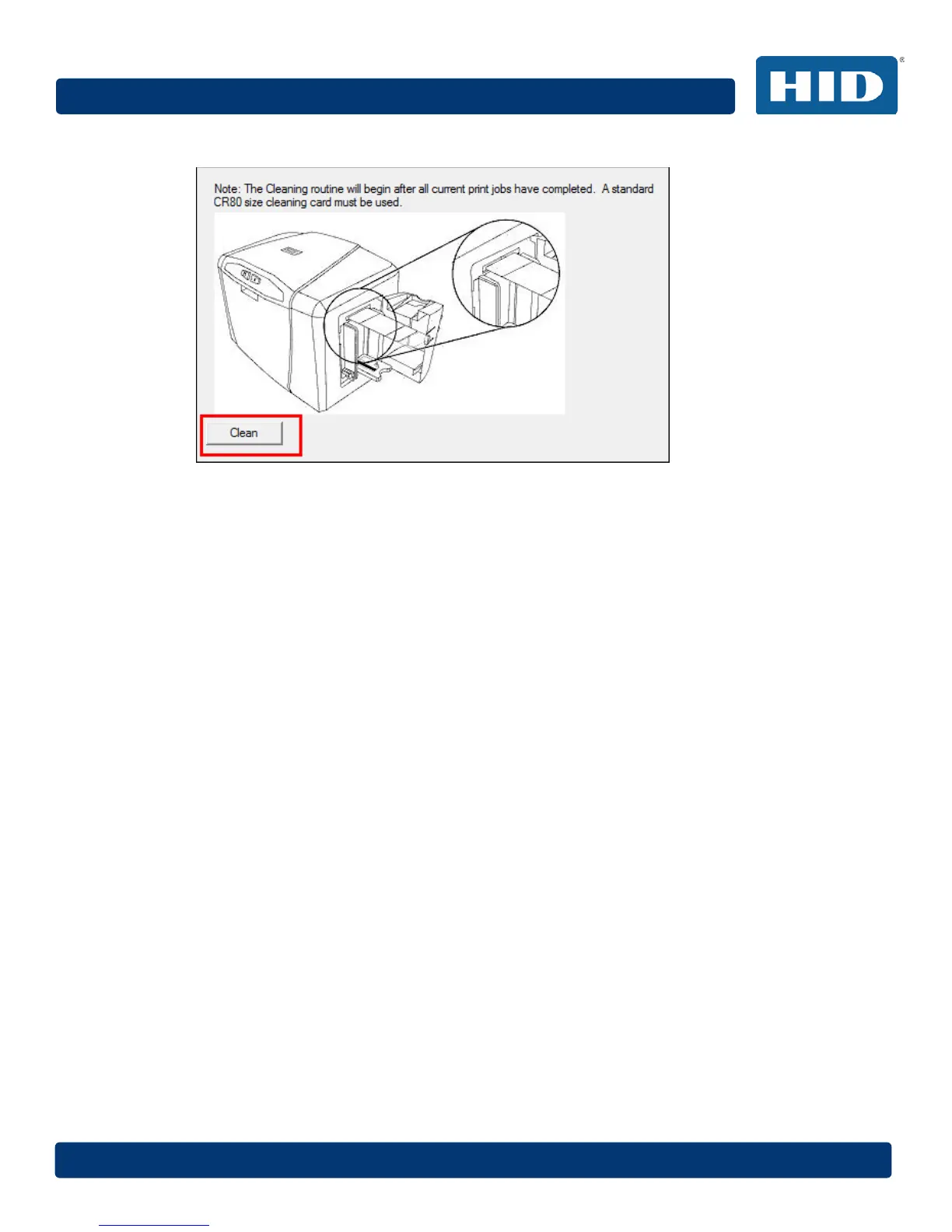 The printer pulls in the cleaning card. The printer performs the automated cleaning
