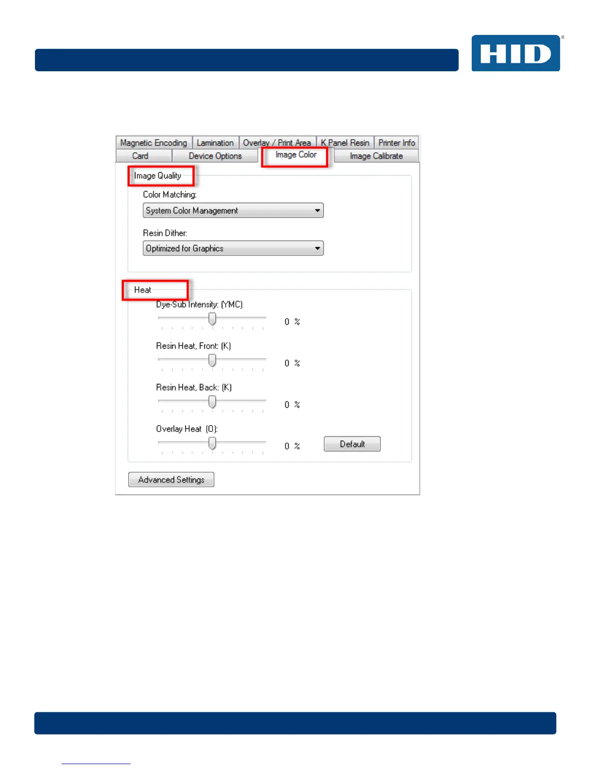 Use the Image Color tab to improve the quality of the image on the card. Image Color includes two