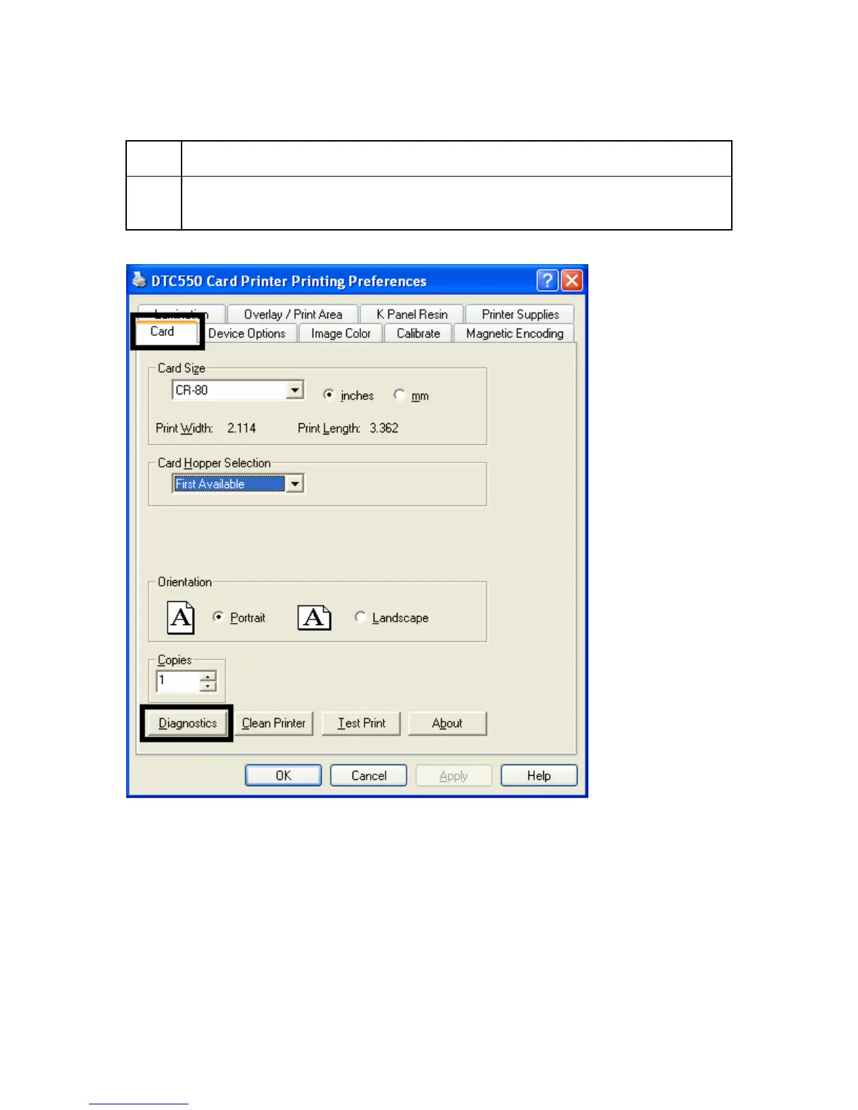 Fargo DTC550 - Using the Diagnostics Button under the Card Tab