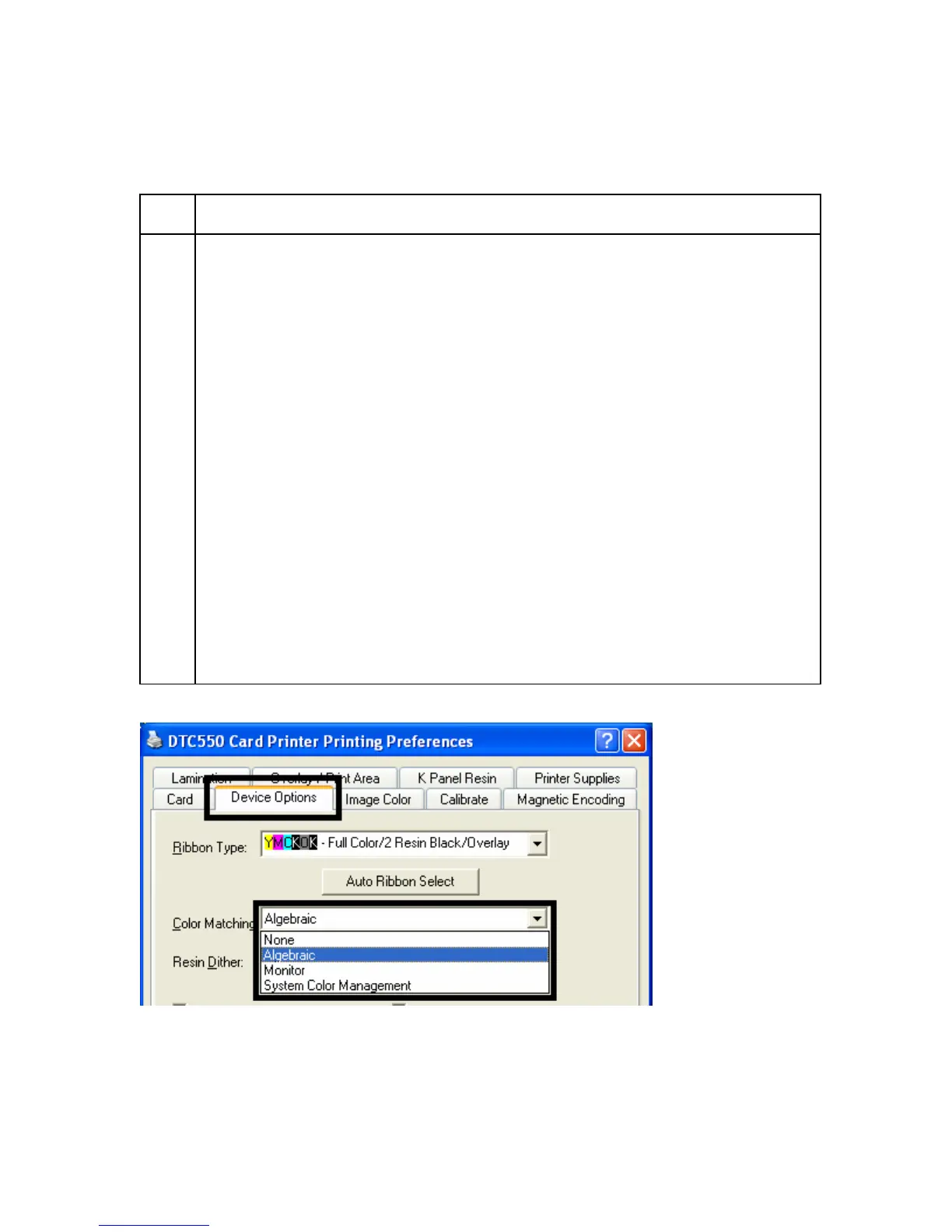 Select Algebraic to allow the Printer Driver to make very simple, fast, color