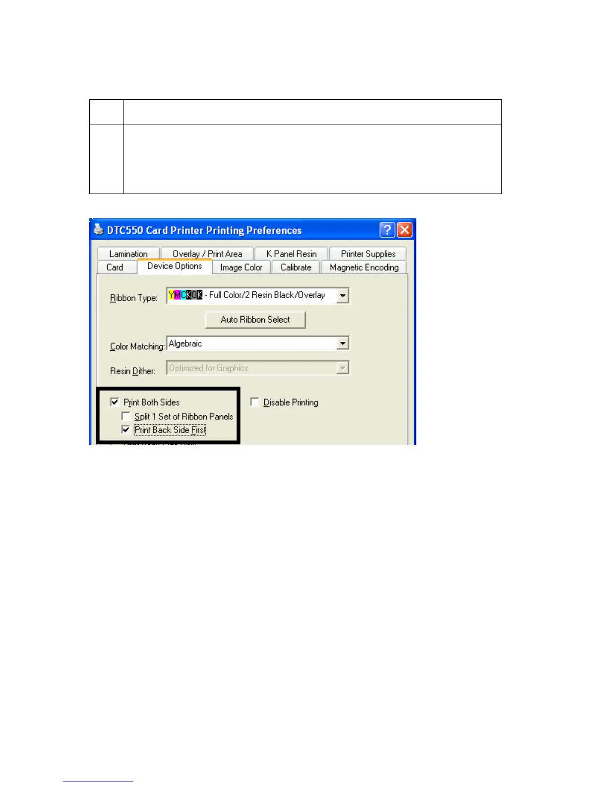 Using the Print Back Side First option