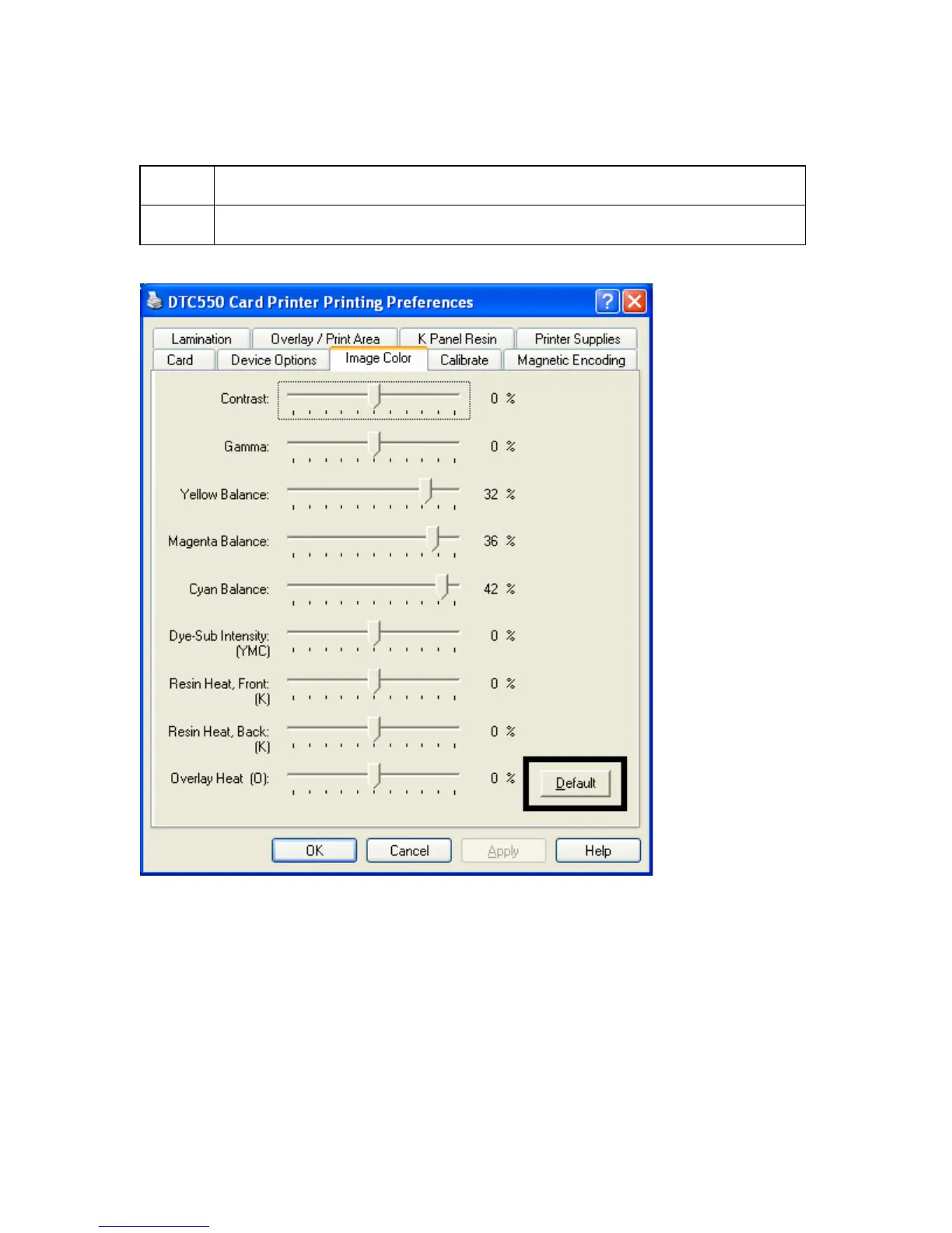 Fargo DTC550 - Using the Image Color Option and Default Button