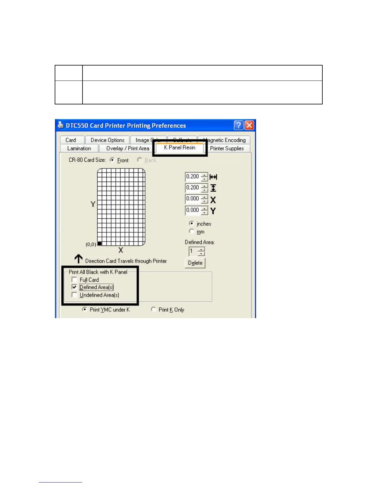 1 Select the Defined Area(s) option to print the resin black (K) panel for all