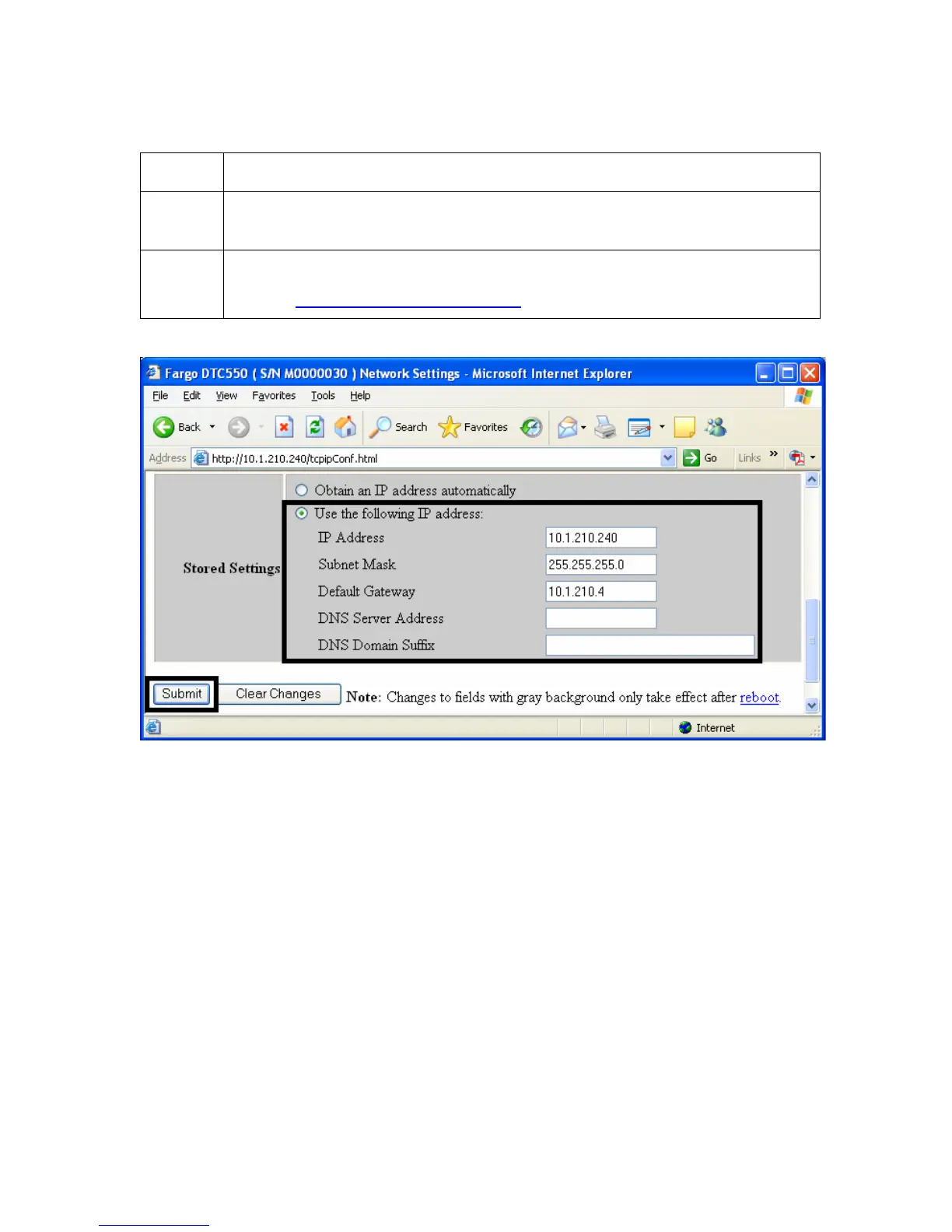 Changing to the static IP address mode (continued)