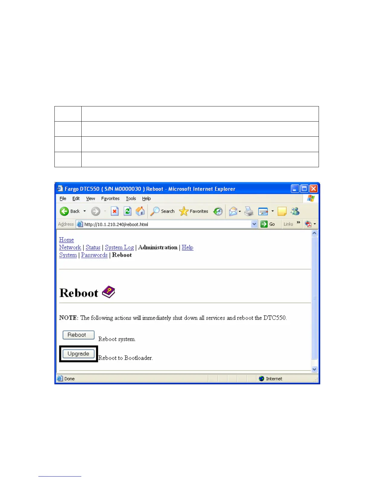 DTC550 printer/encoder, this Upgrade page provides for upgrading the main Printer