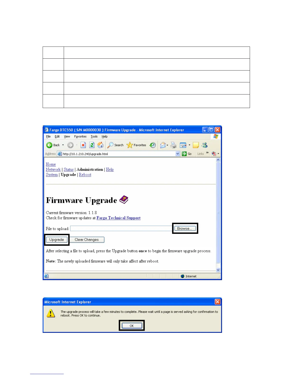 Display A – Selecting the Browse and Upgrade buttons.