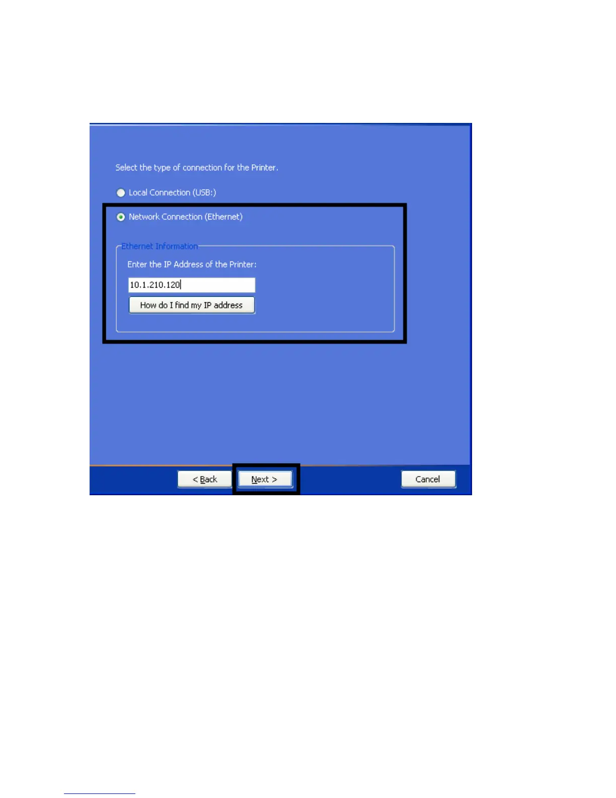 Display B - Network Connection (Ethernet) radio button