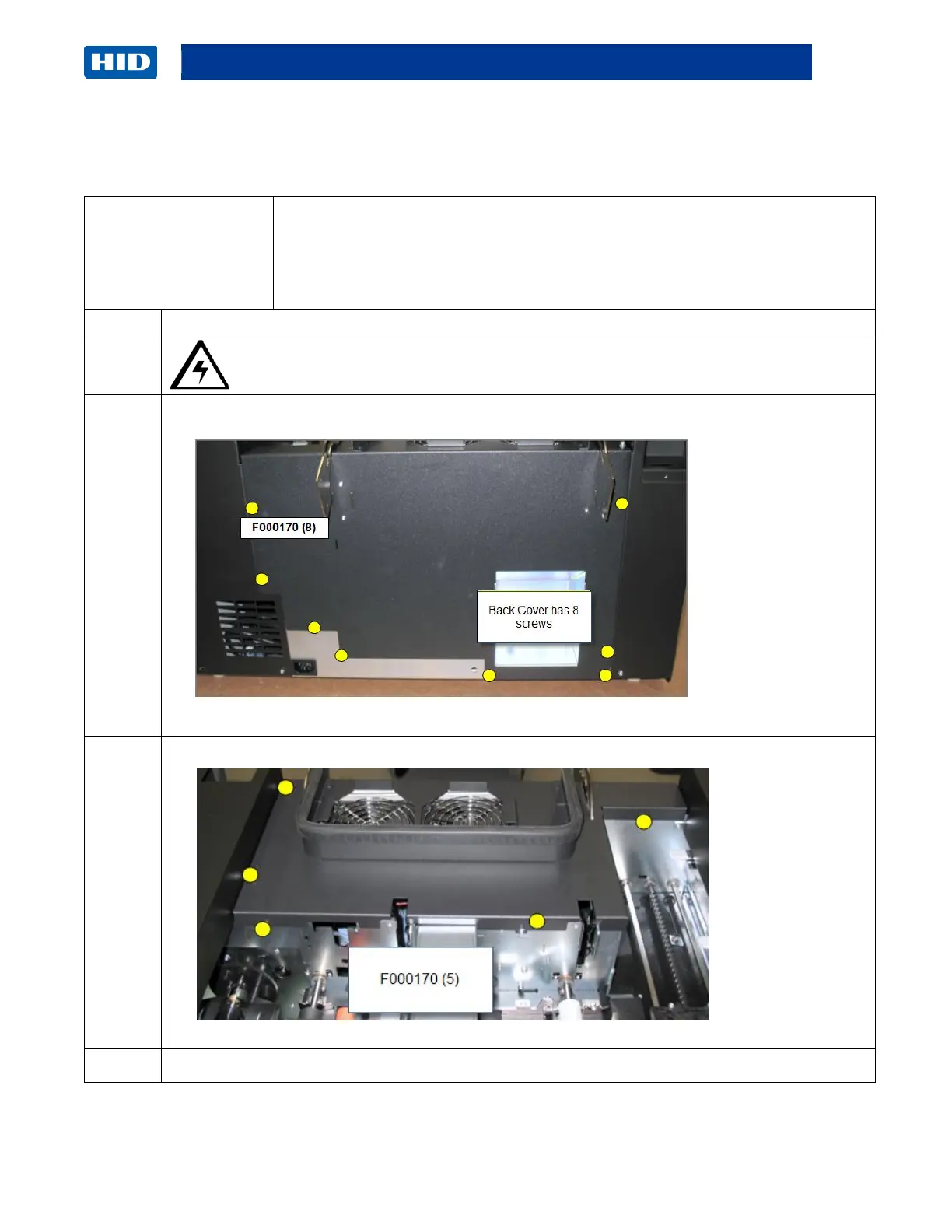 Remove the (8) screws (F000170) from the back side of the cover.