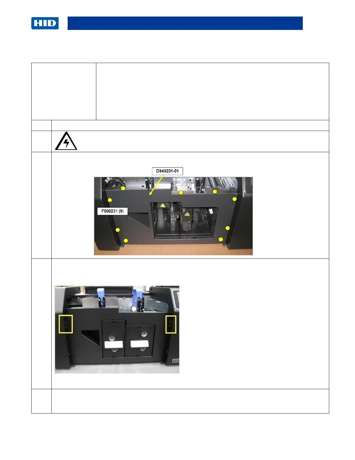 Remove the (9) screws (F000231) from the front cover panel