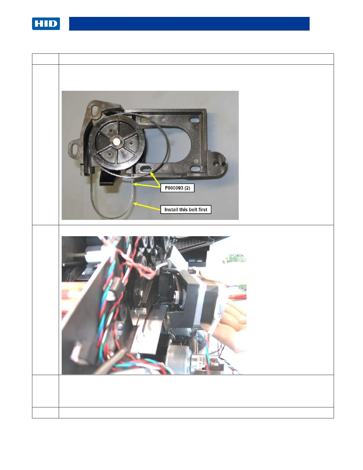 Replace the two (2) Print Stepper Motor Belts (F000093-2) as needed. (Note: One of the