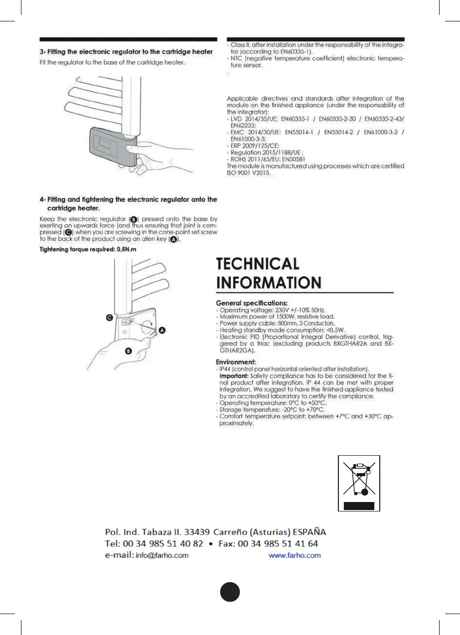 The crossed-out bin symbol appears on all FARHO products to remind the consumer of the obligation to separate them