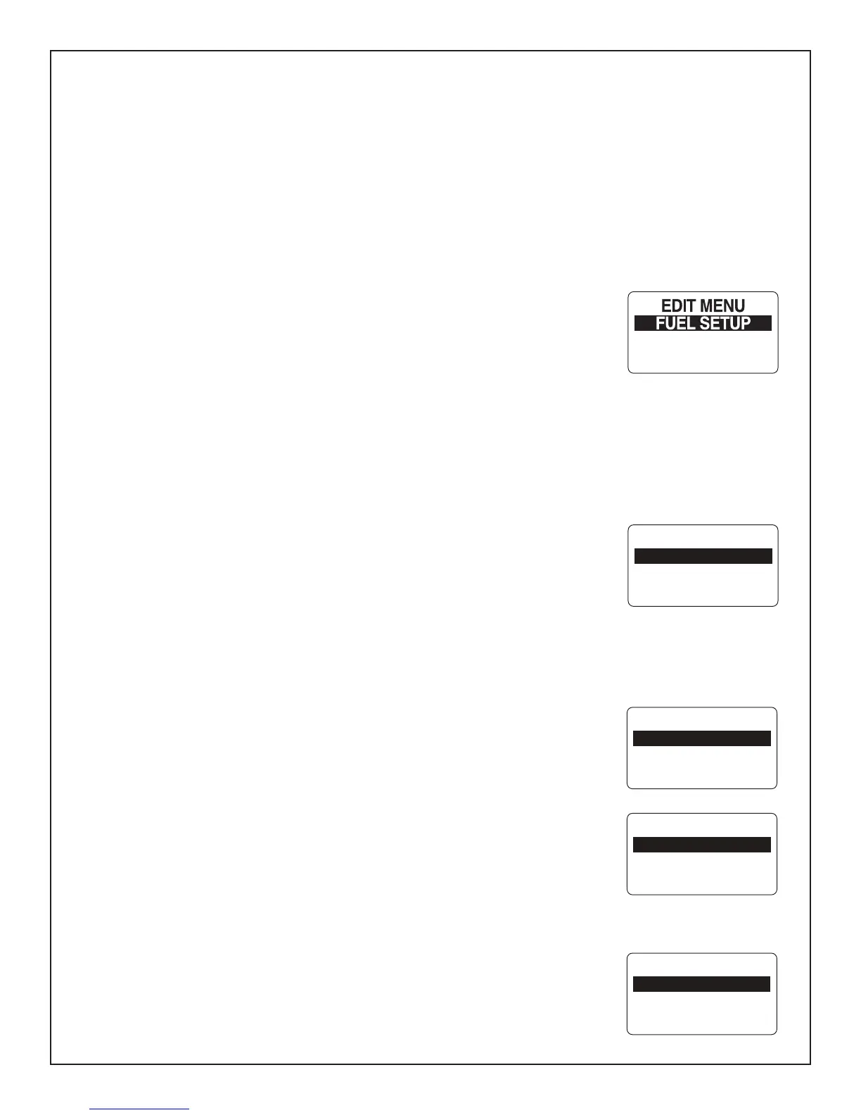 used, set the tank size, select the fuel sender, calibrate the fuel sender, set the low fuel