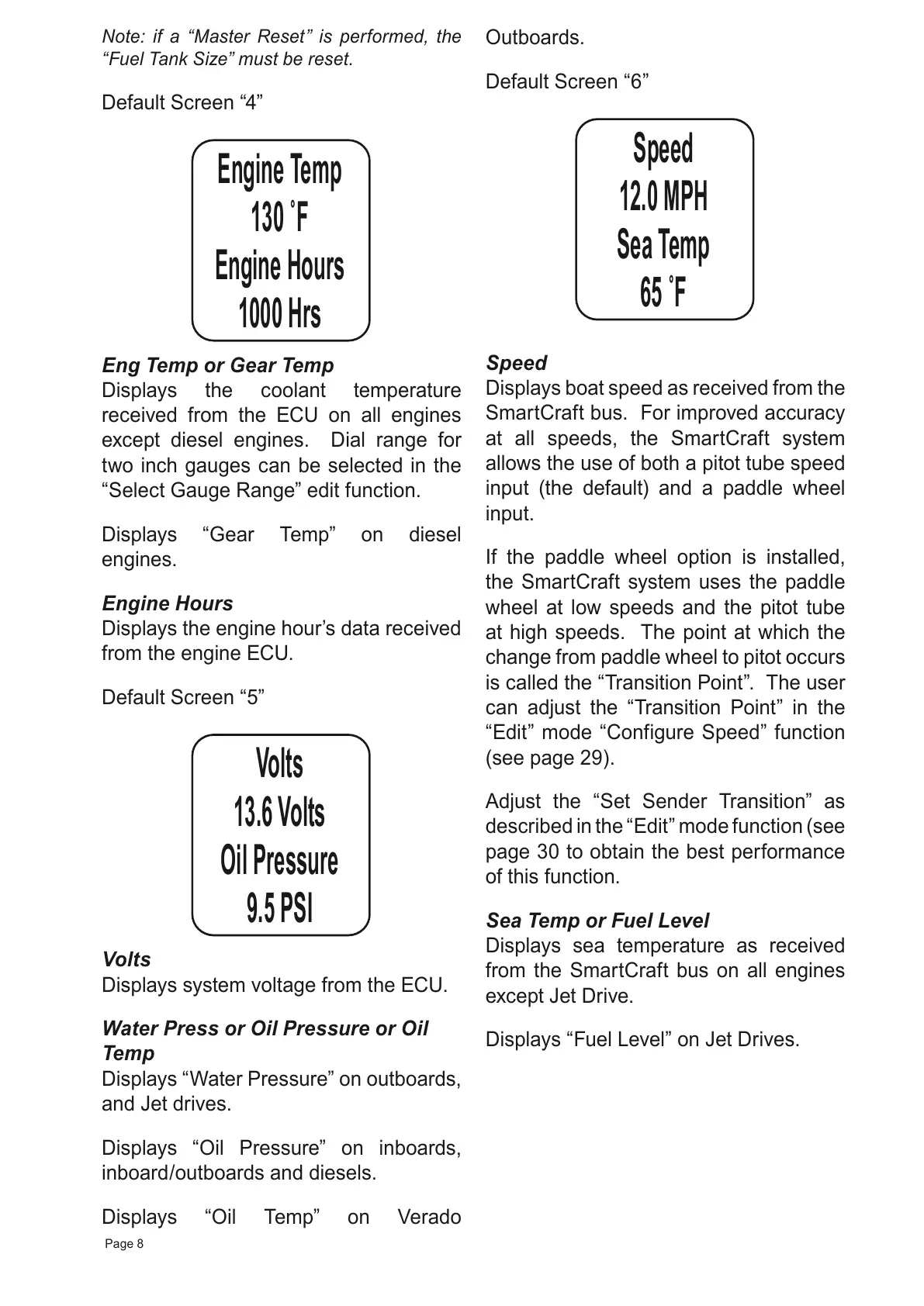 Displays “Oil Pressure” on inboards,