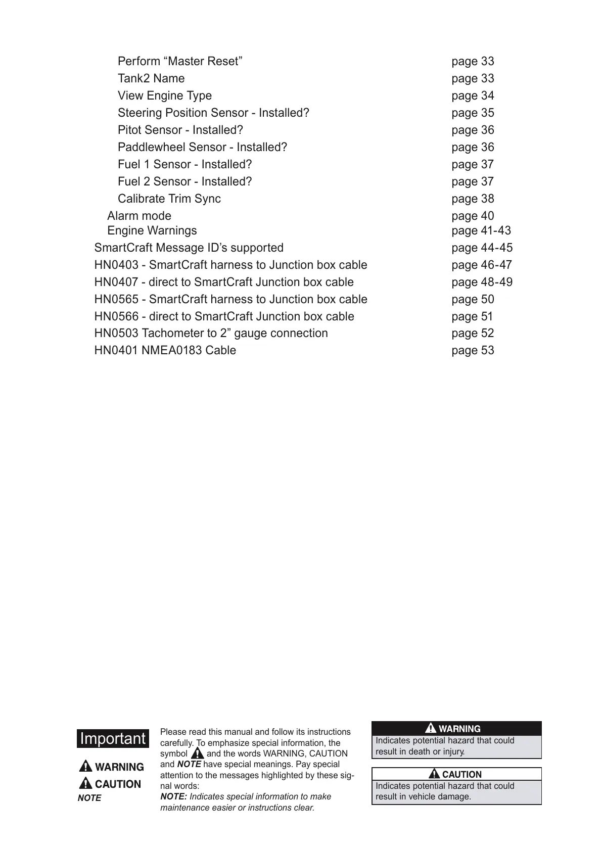 Engine Warnings page 41-43