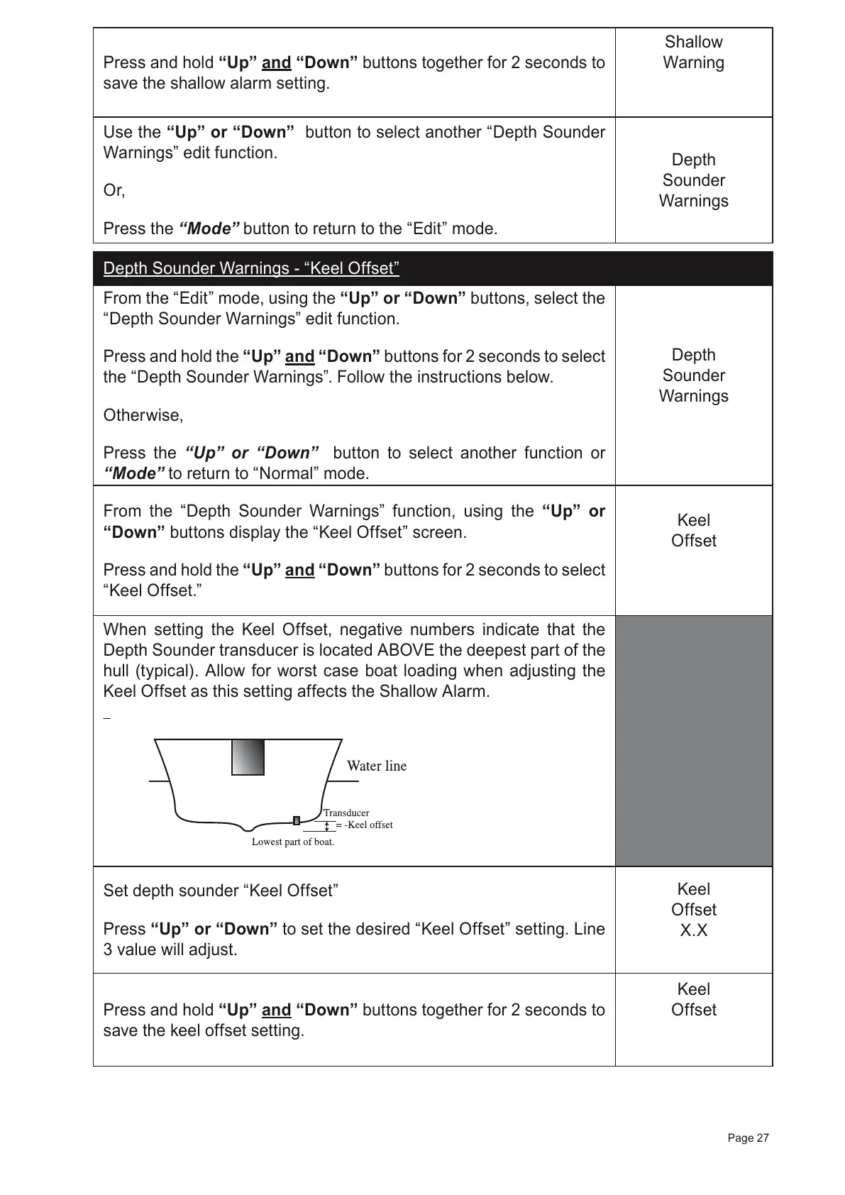 Depth Sounder Warnings - “Keel Offset”