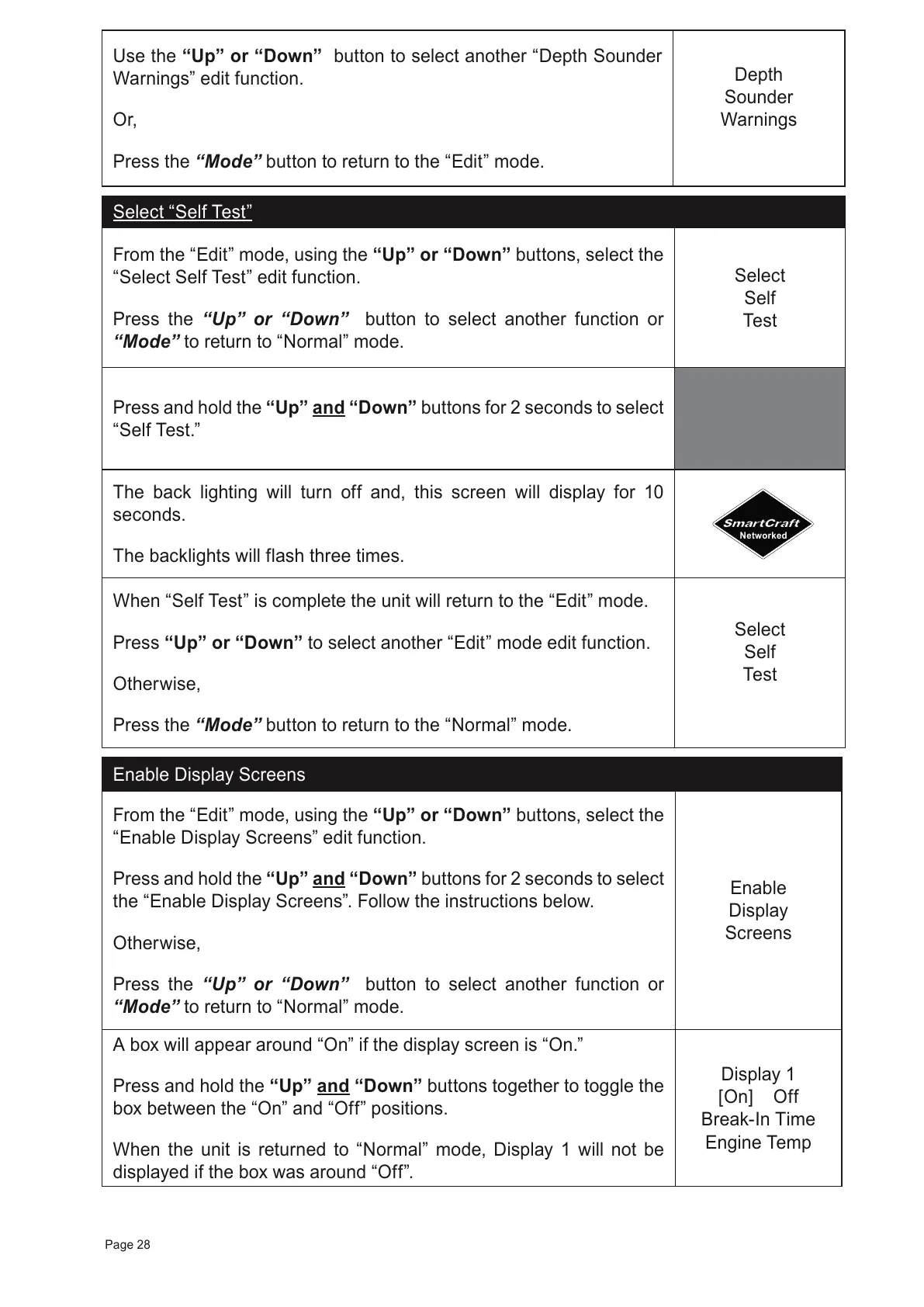 “Select Self Test” edit function.