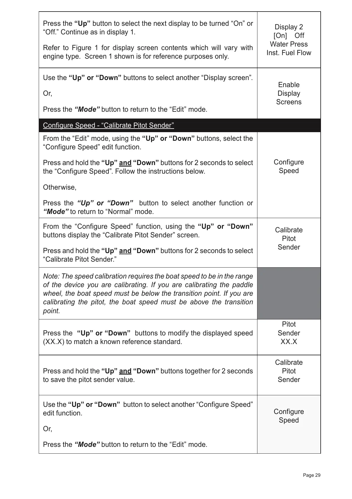 Press the “Up” or “Down” buttons to modify the displayed speed