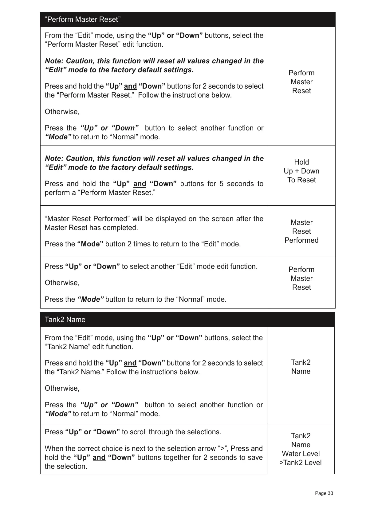 “Perform Master Reset” edit function.