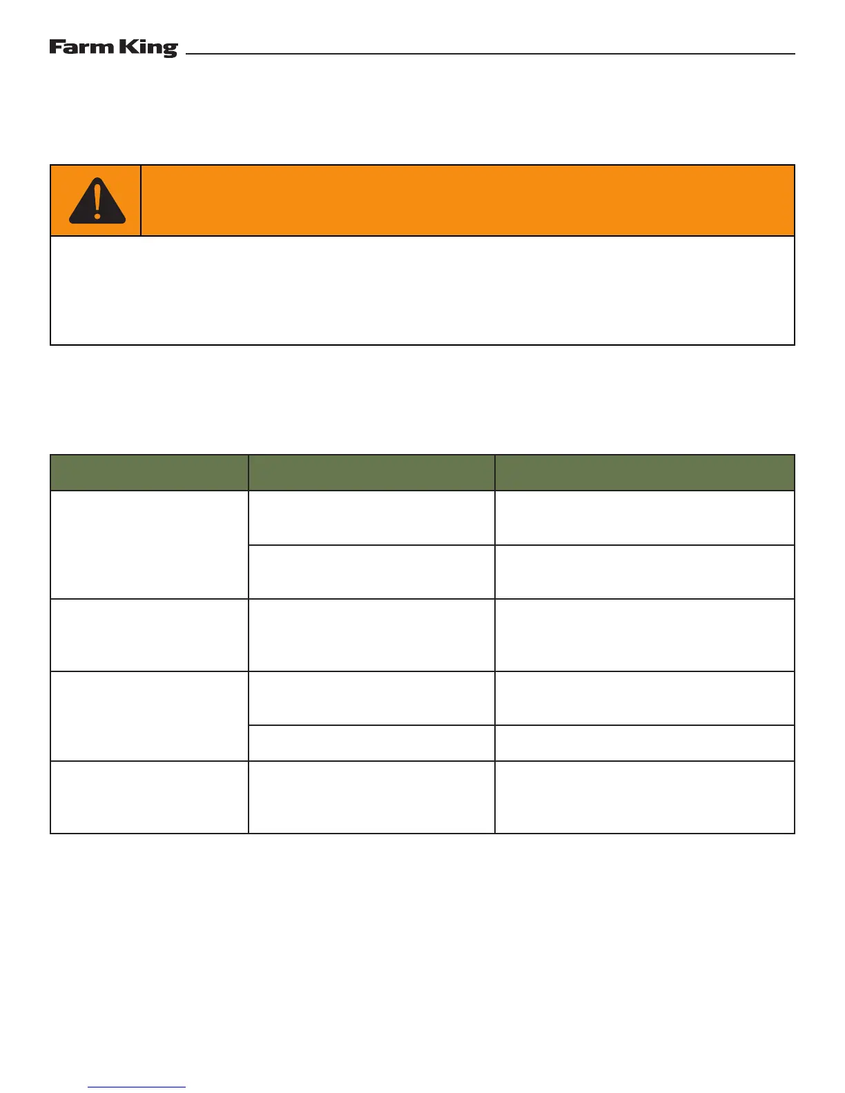troubleshooting section, please call your local Farm King dealer. Before you call, please have this