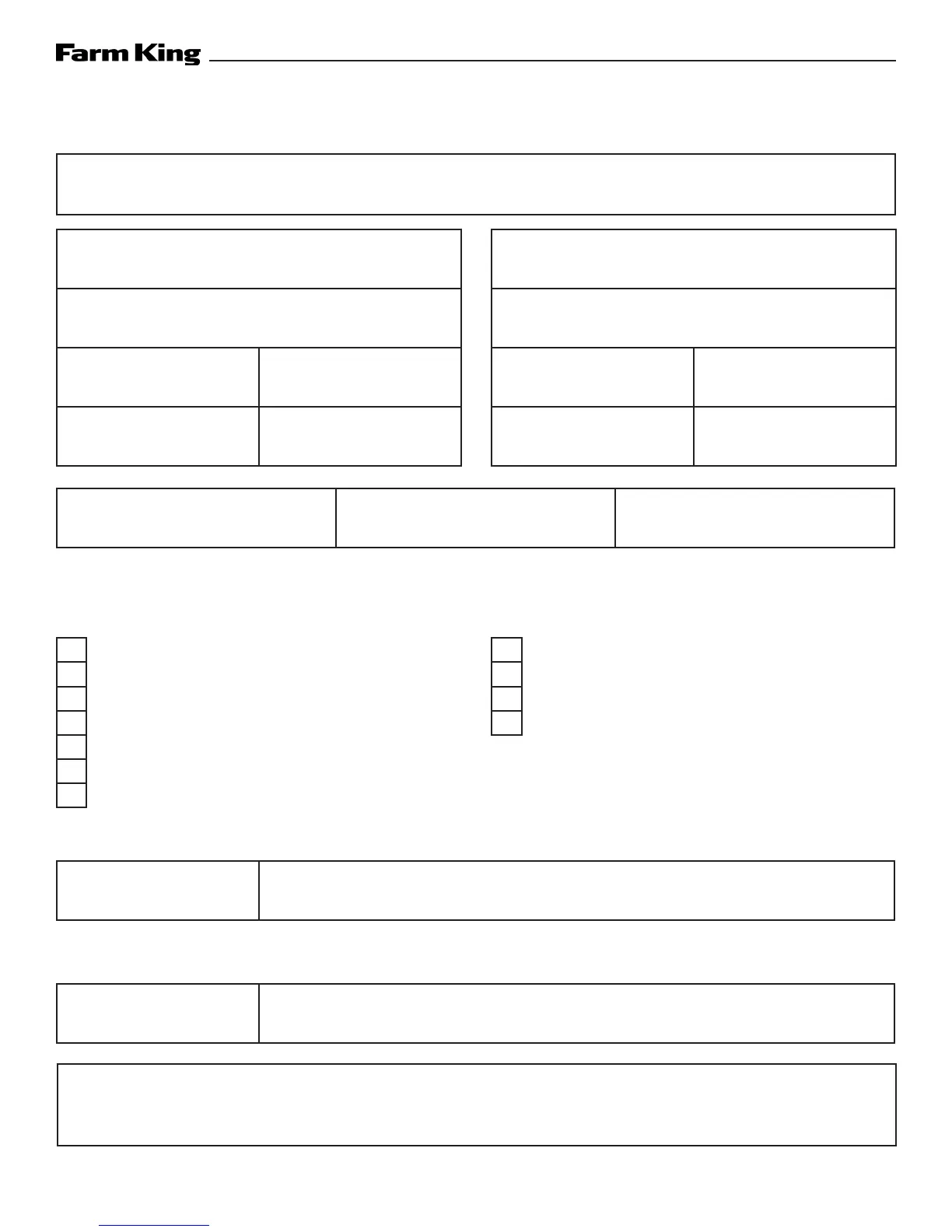 the form. Send original Warranty Registration Form to Farm King. Give one copy to the customer and