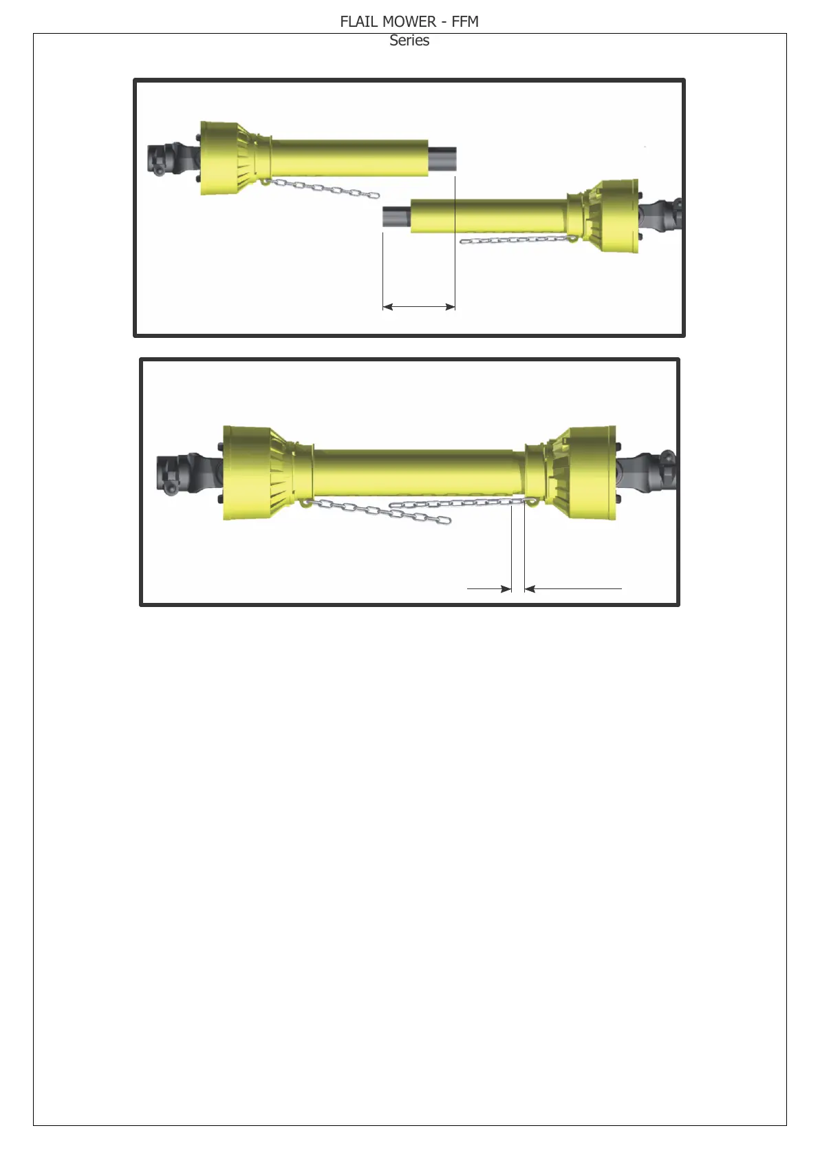 A driveshaft too long may cause structural damages to the tractor and machine. If the driveshaft is too