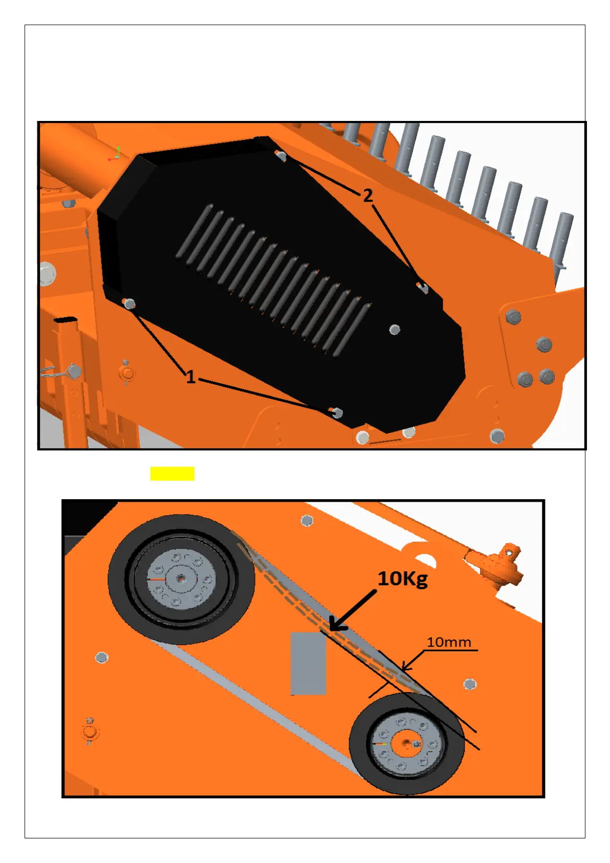 To check the correct belt tensioning of the side transmission, remove the safety cover of the belts by loose-