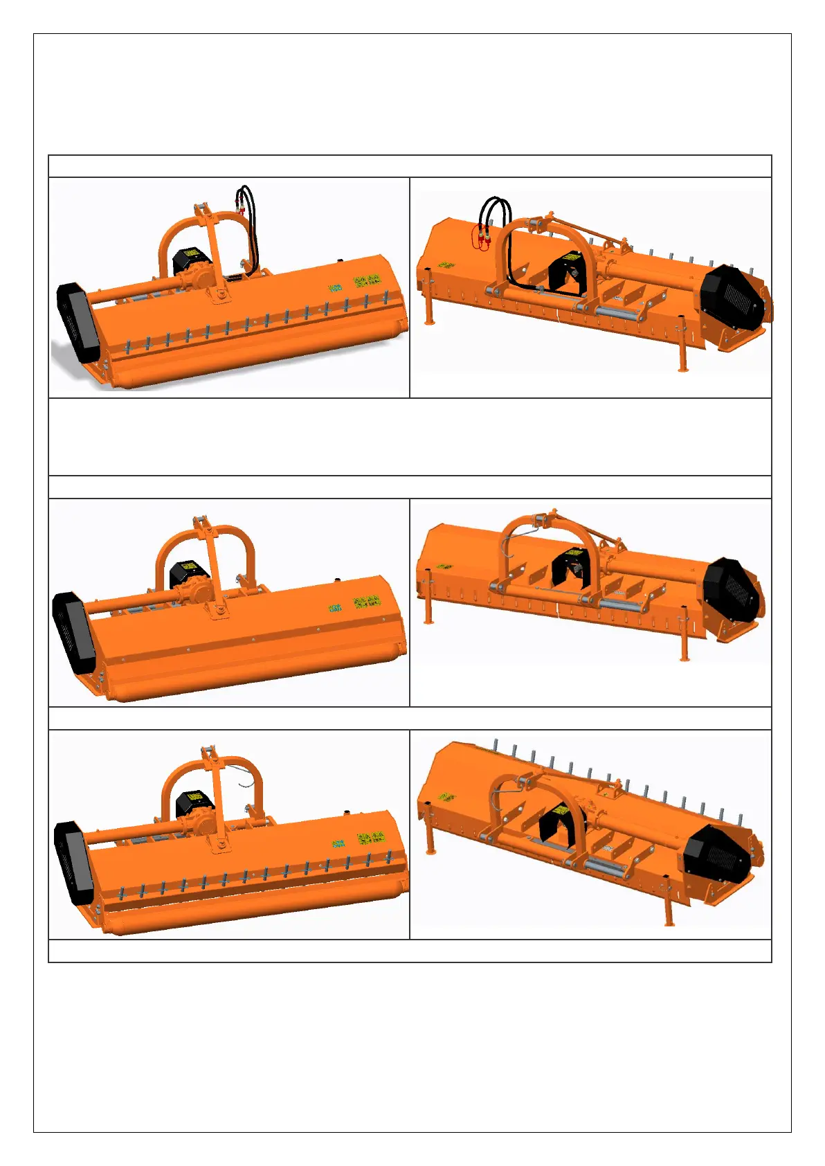 The standard configuration can be changed applying one or more optional parts, listed below: