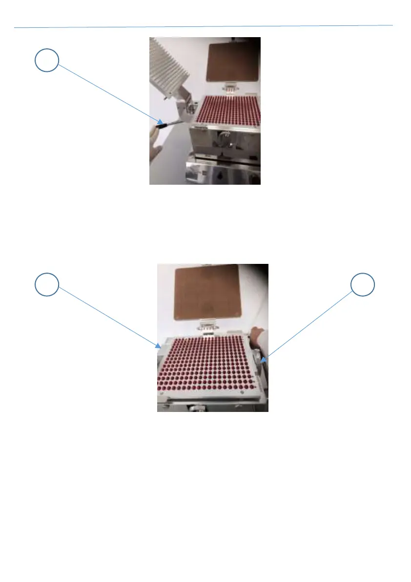 3. Open the caps by pressing the lever (H) on the right side of the machine, Fig. 25;