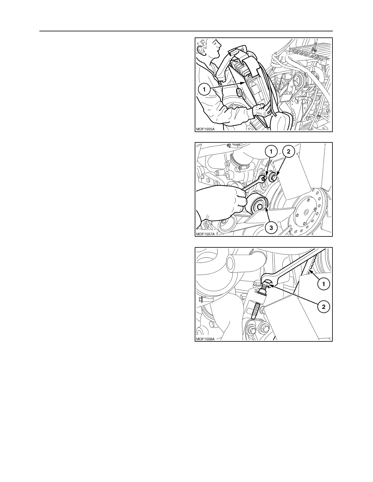 5. Loosen the bolt (2) tensioning the belt (1) and re-
