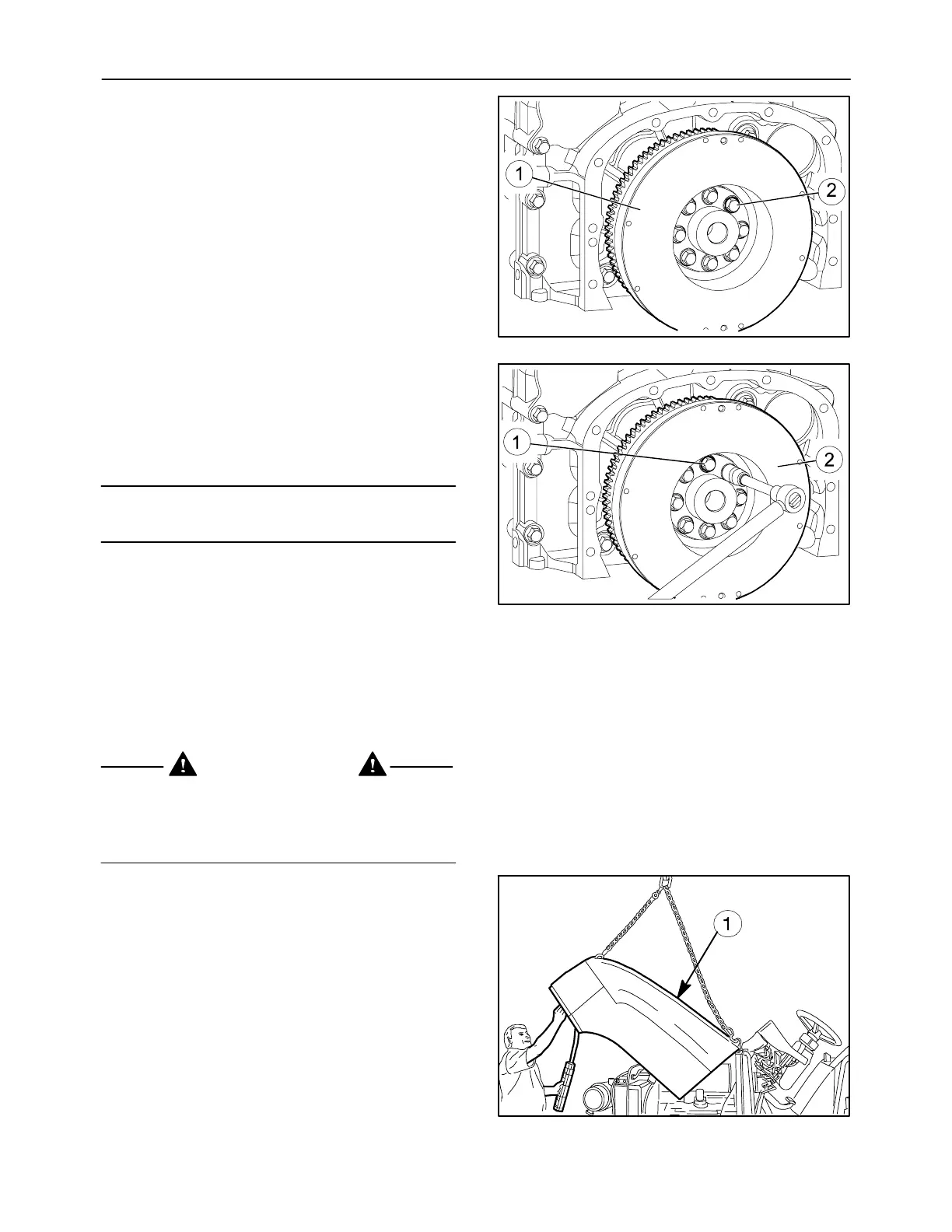 4. Tighten the bolts (1) securing the engine flywheel