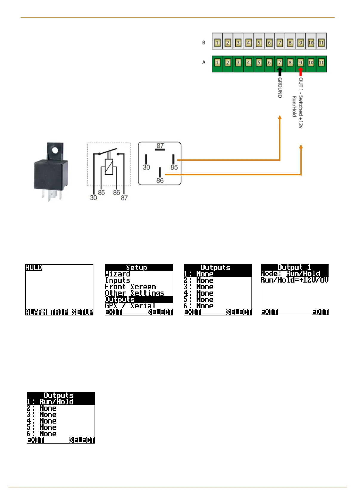 Pin 86 to A9 Out 1 (Jackal +12v Run/Hold Output)