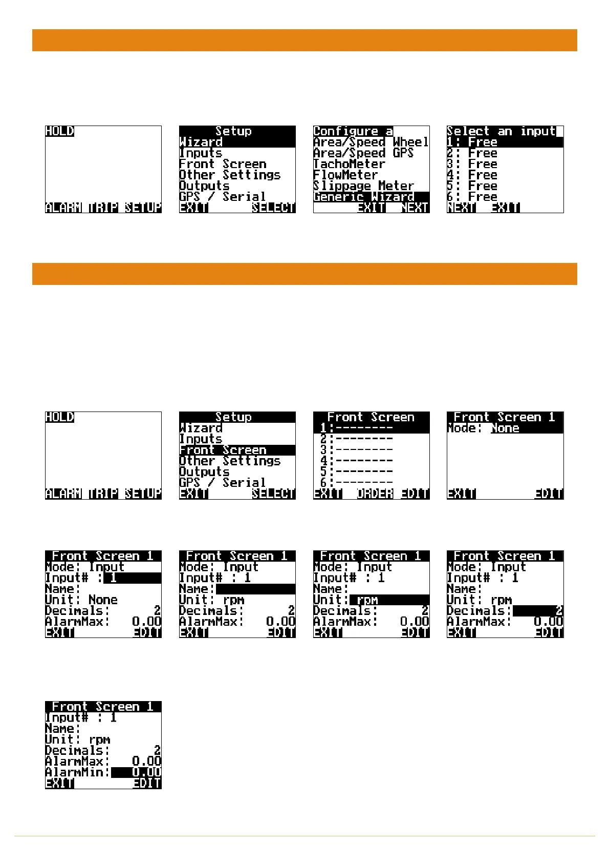 NB: Selectable units realte to the input type. E.g: Input 1 setup as a rev/pulse could display rpm or hz as the unit
