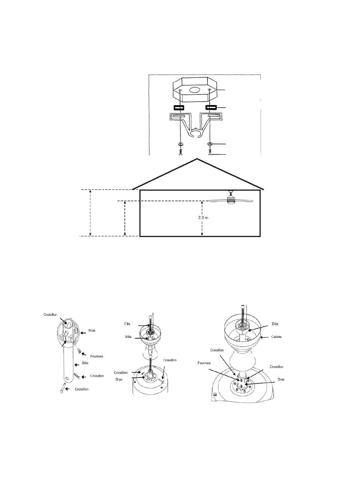 1- Passez les câbles électriques d’alimentation par la tige d’extension et la cloche de plafond. Insérez la tige d’extension