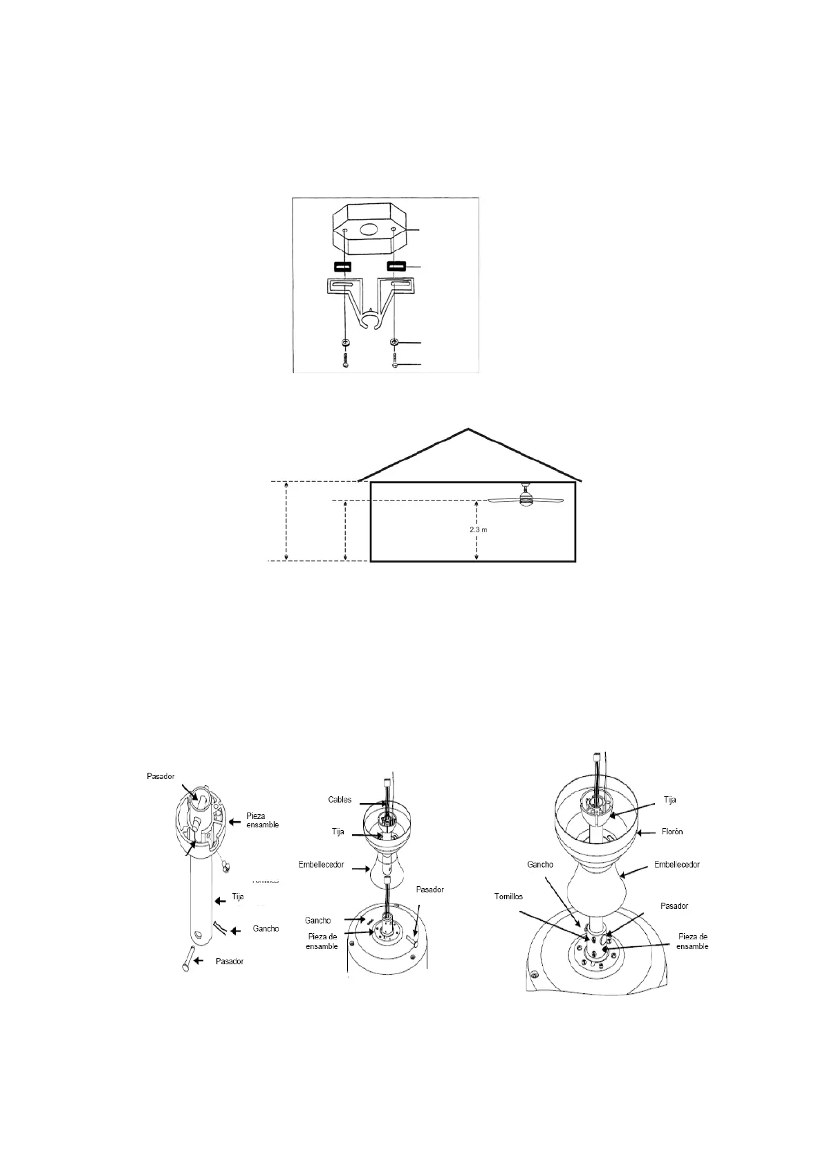 1- Introducir los cables del motor a través del conjunto de tija y florón. Insertar la varilla en la horquilla. Comprobar