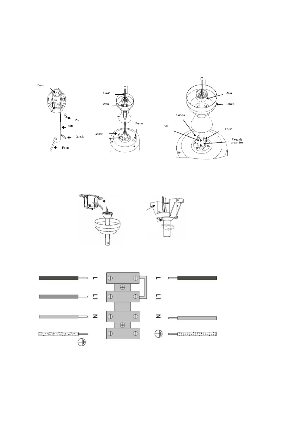 1- Alimentare i conduttori elettrici del motore attraverso l’insieme dell’asta e la calotta. Inserire l’asta nella brida. Assicurarsi