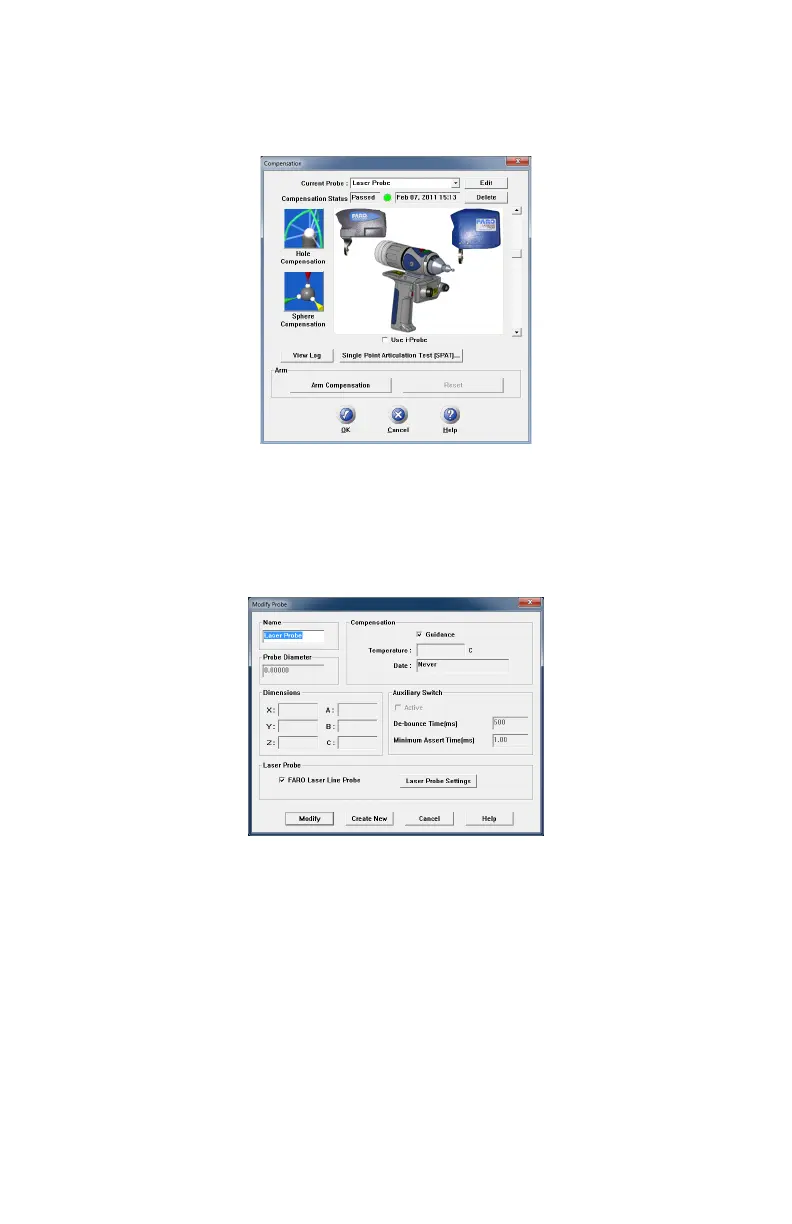 • Click the LASER PROBE SETTINGS button to modify the settings of the