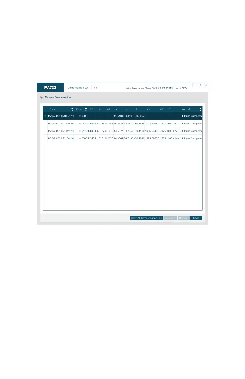 2. A copy of the probe compensation log.