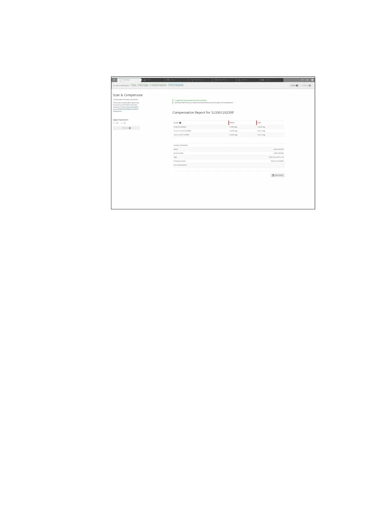 • When the compensation is finished, the Compensation Report is displayed