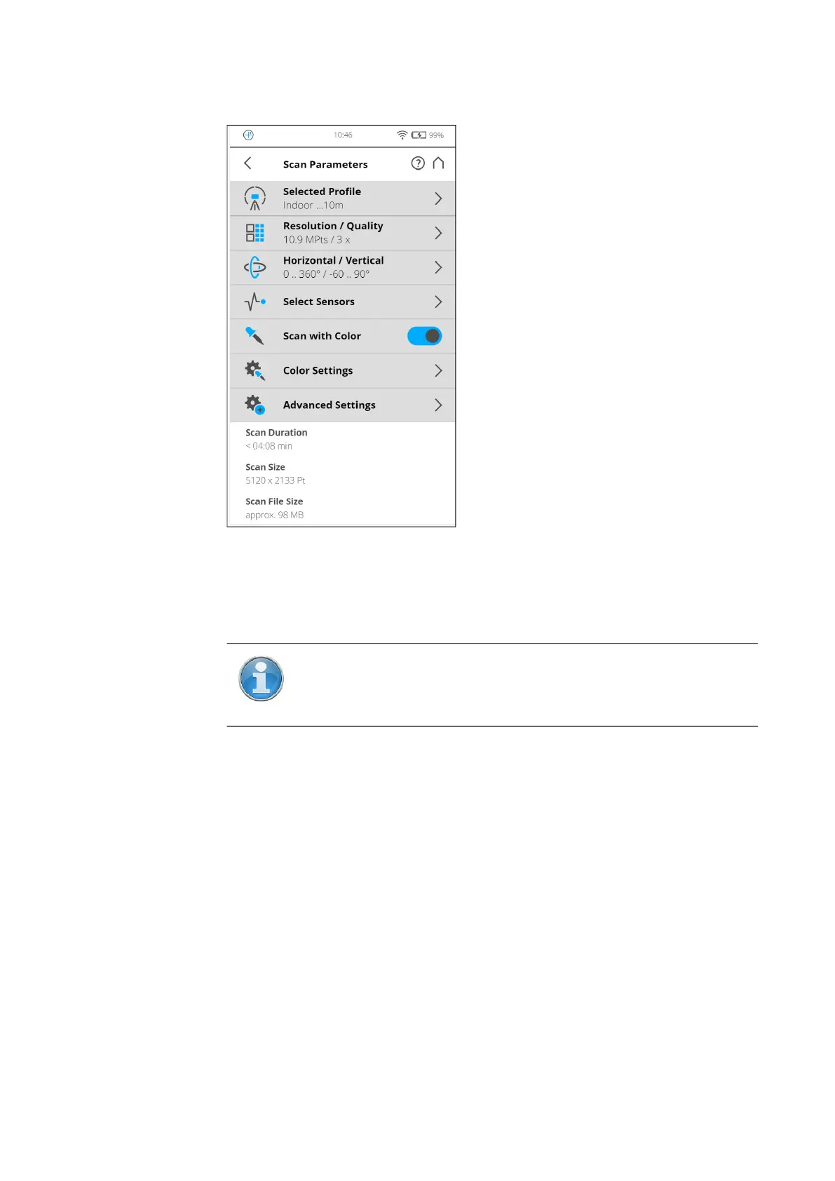 integrated color camera. These photos will be taken right after the laser scan