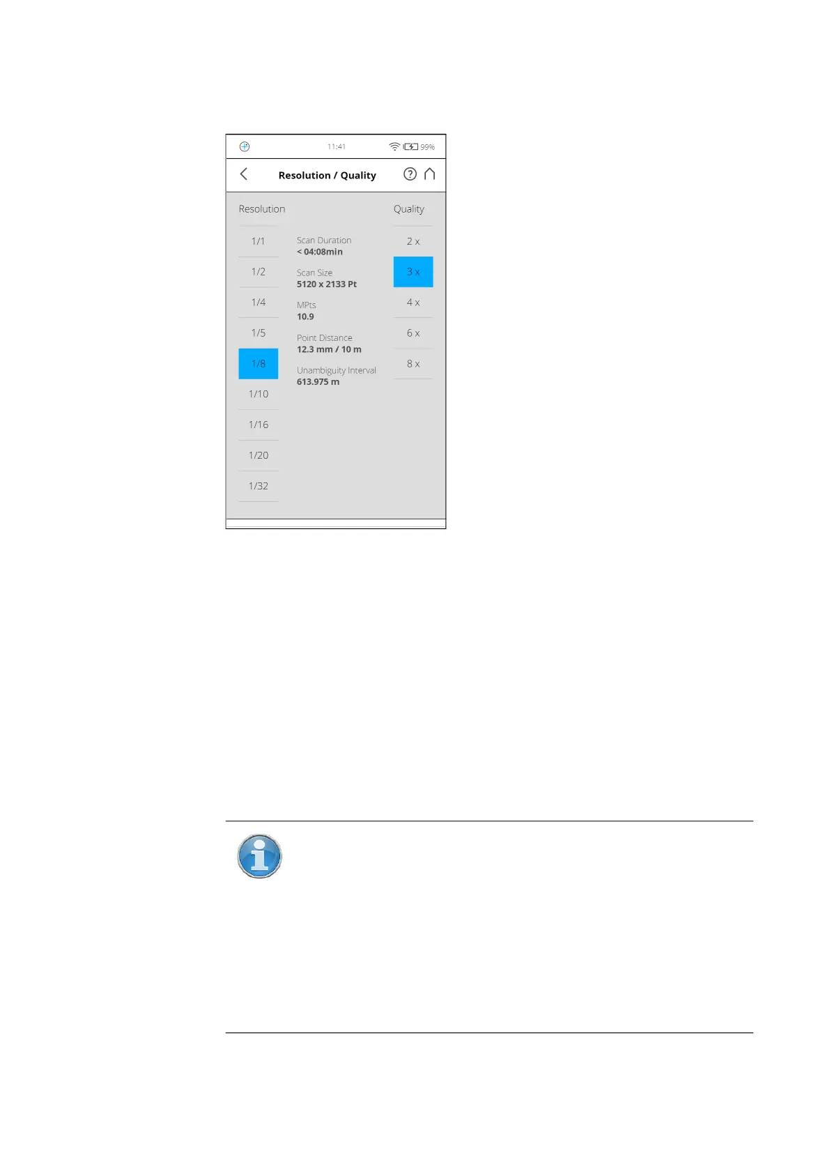 [Pt]), as well as the resulting scan size in megapoints (MPts) will be displayed