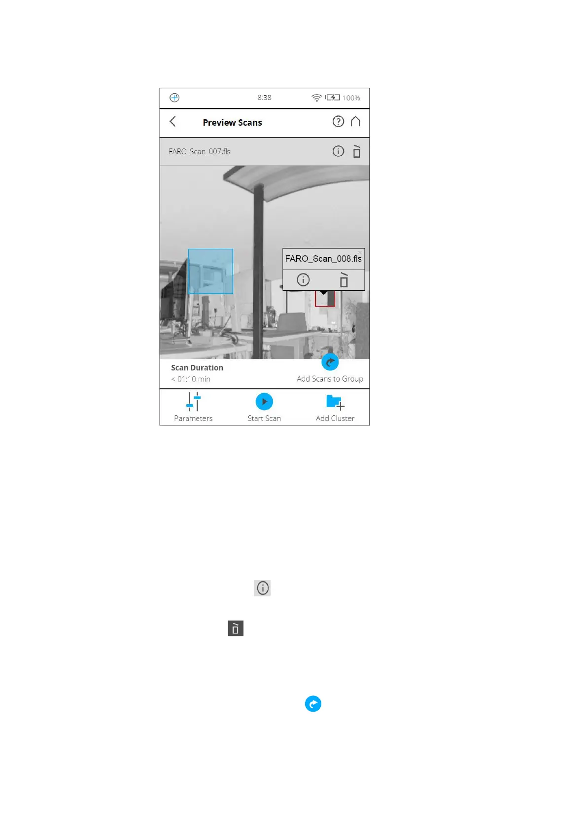 scan itself and to check if all objects (e.g., targets) are clearly visible. This