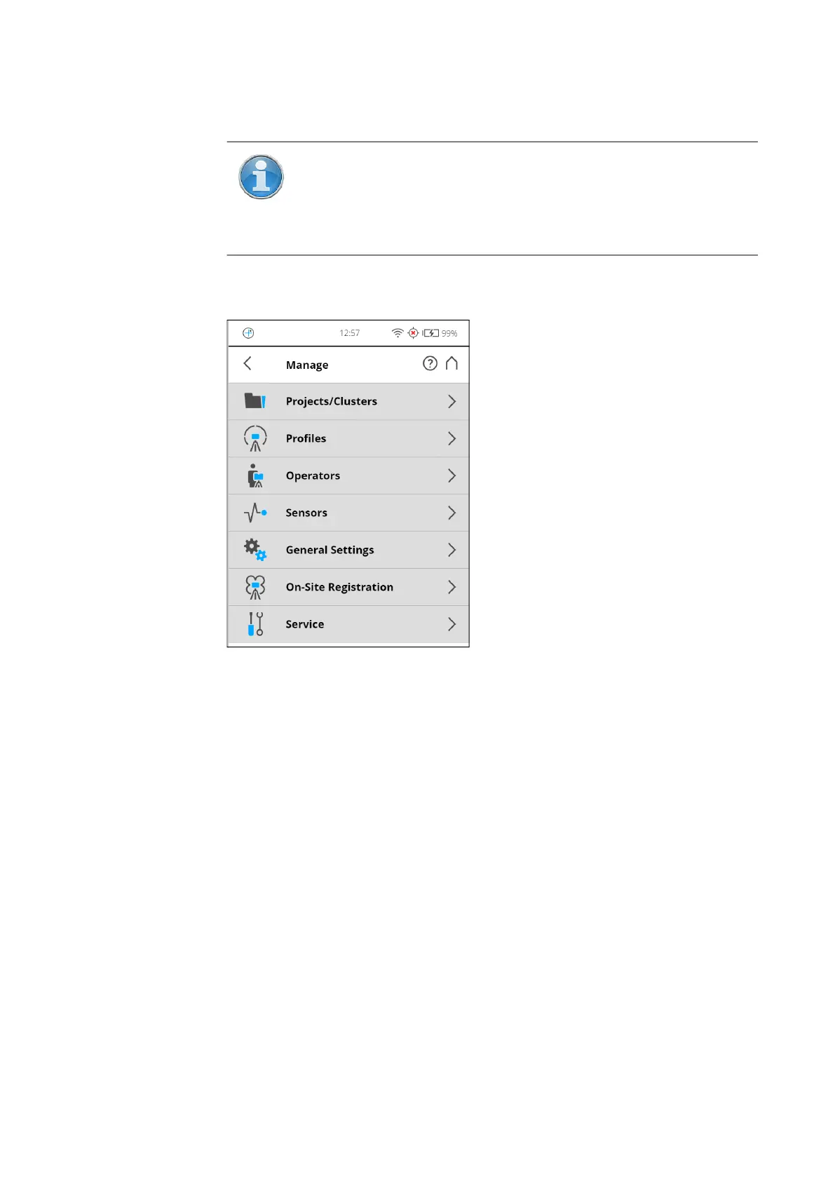Projects/Clusters Select the current scan project, add new or edit existing projects. Tap to get a