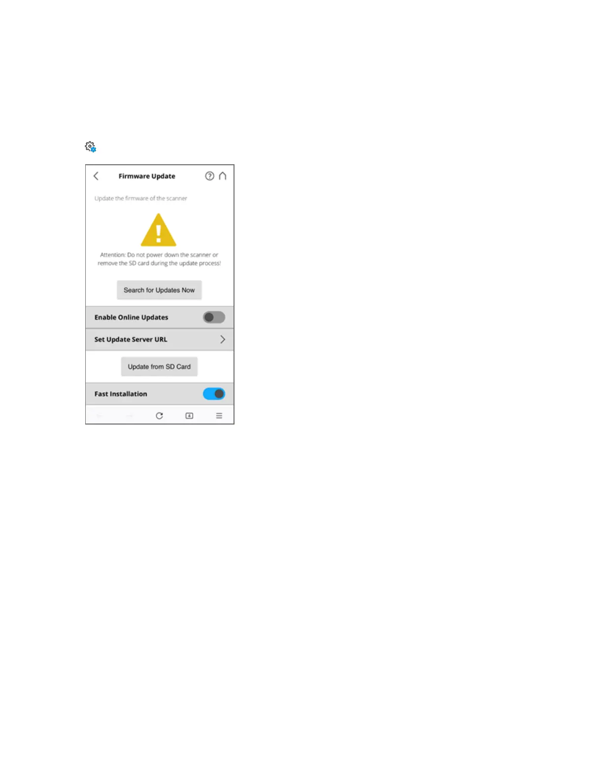 l The scanner is online and can fetch the firmware from a server.