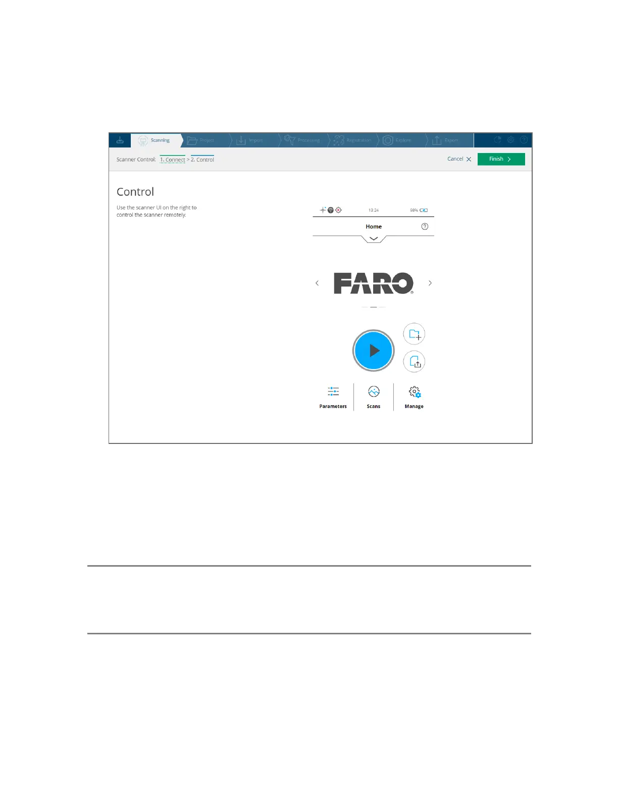 performed in SCENE. Note that on-site registration of the FARO Focus Premium Laser Scanner requires