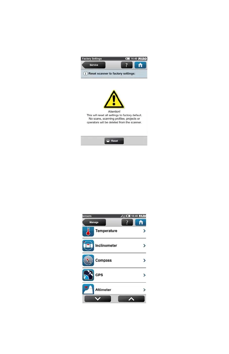 (Home > Manage > Service > Factory Settings)