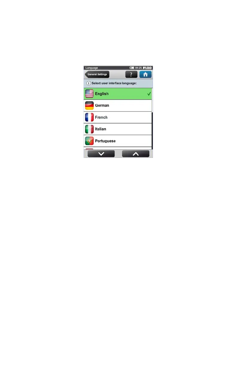 If the list of available languages exceeds the screen size, scroll the list up or down