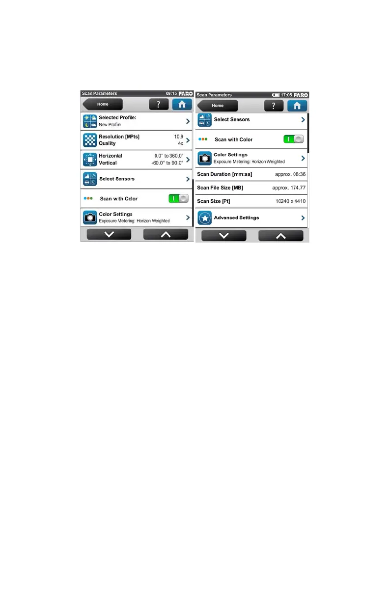 To choose a predefined scan profile or to change the scanning parameters push
