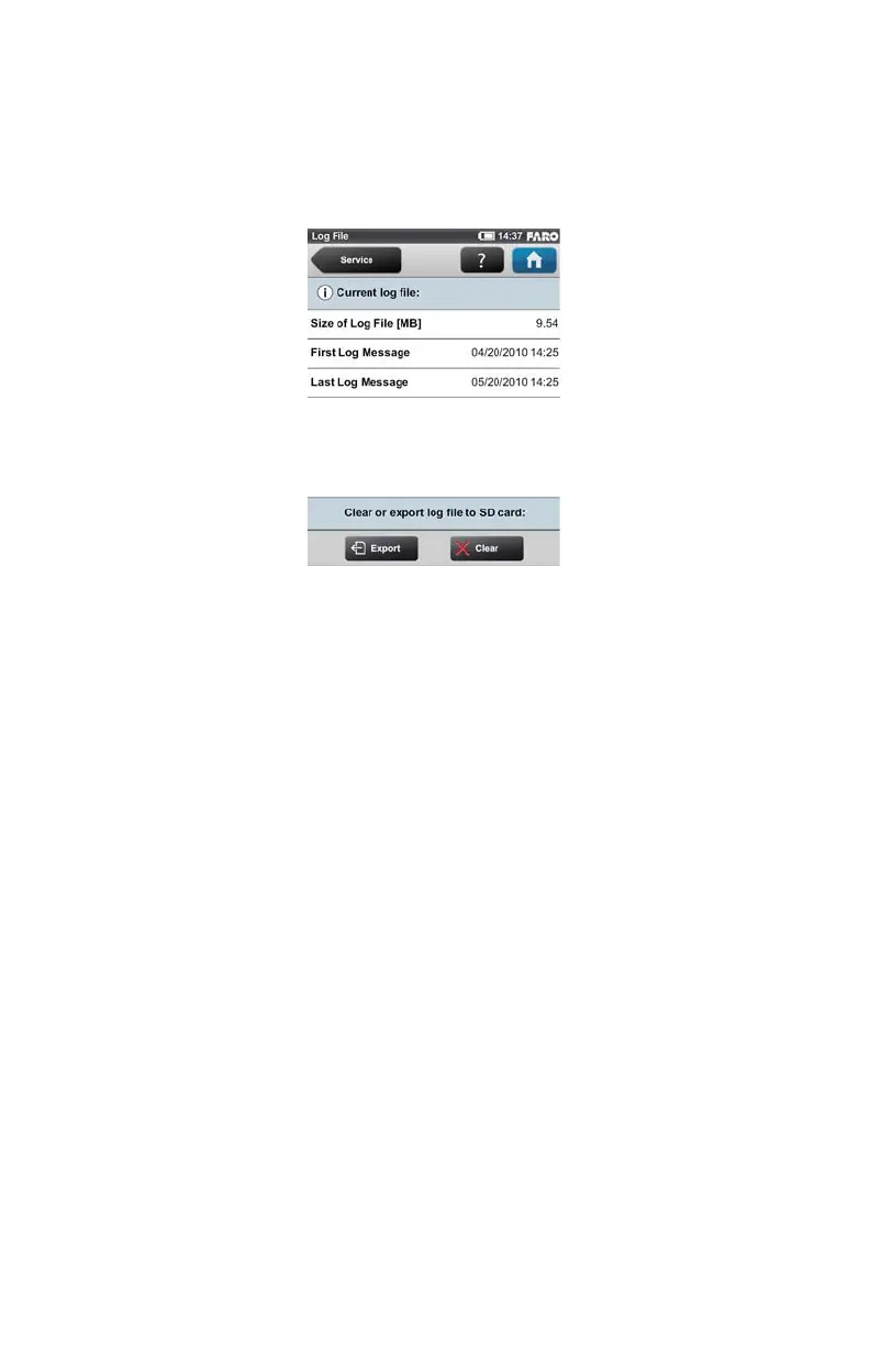 Export - Writes the scanner log file to the SD card. It will be saved to a folder